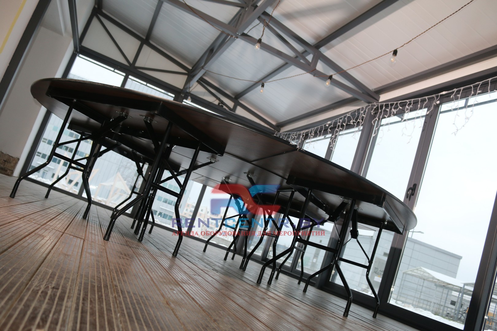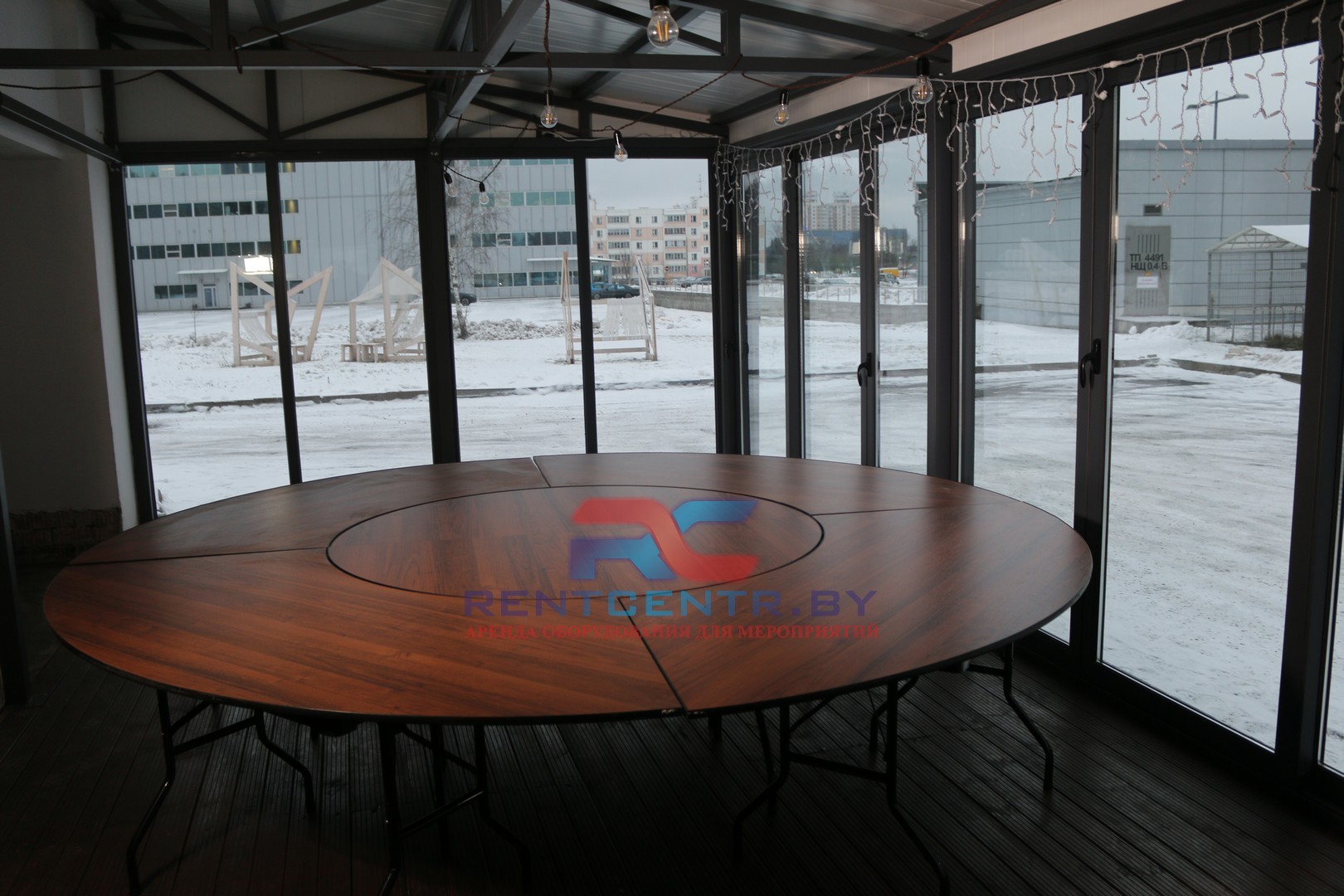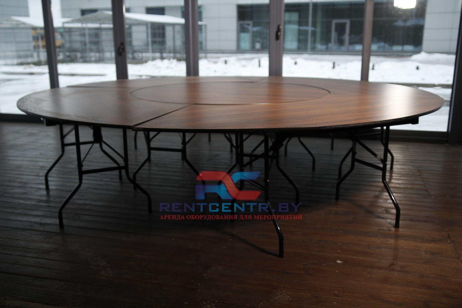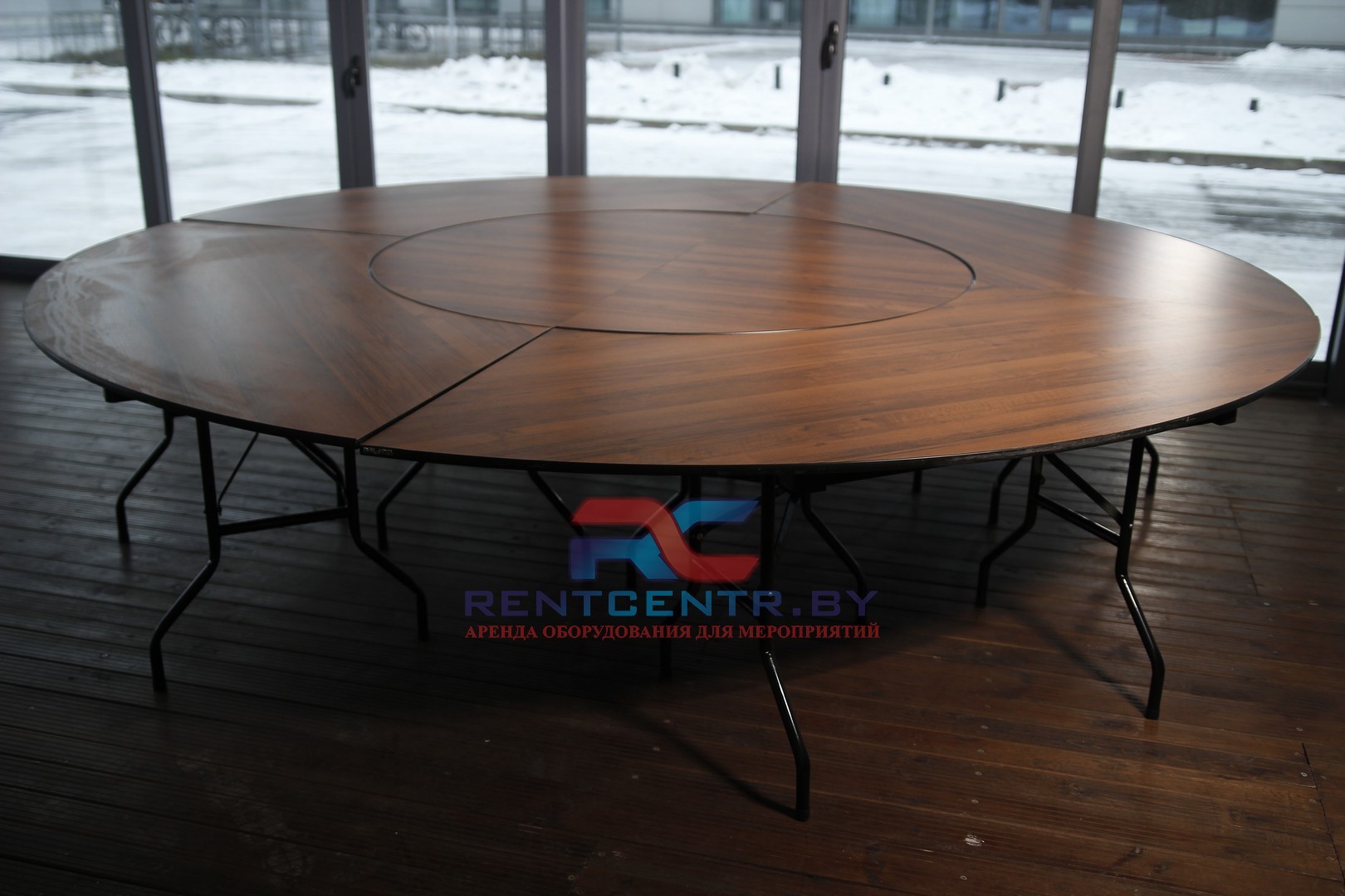 Стол составной. Диаметр 320 см, высота 75 см.